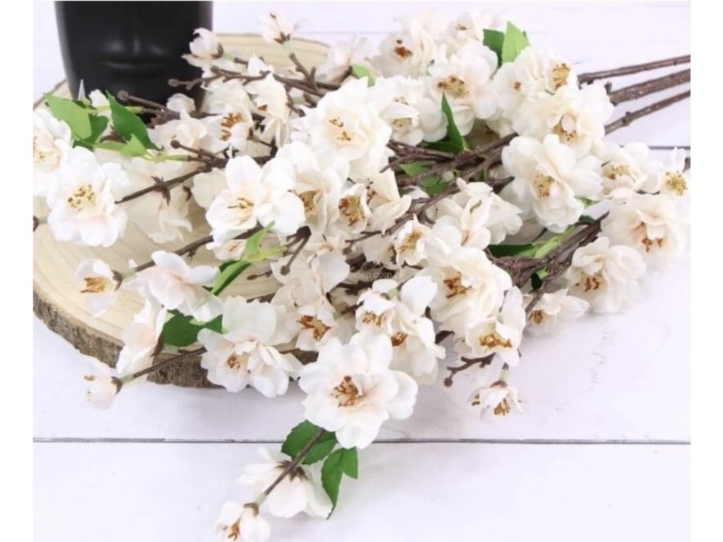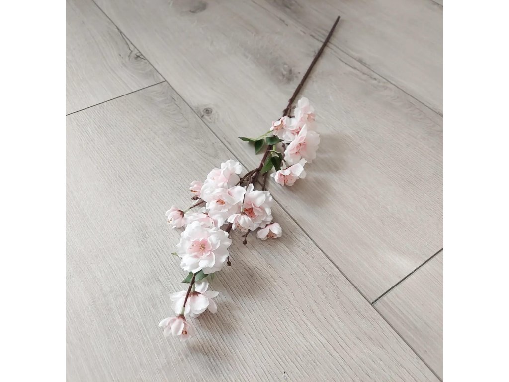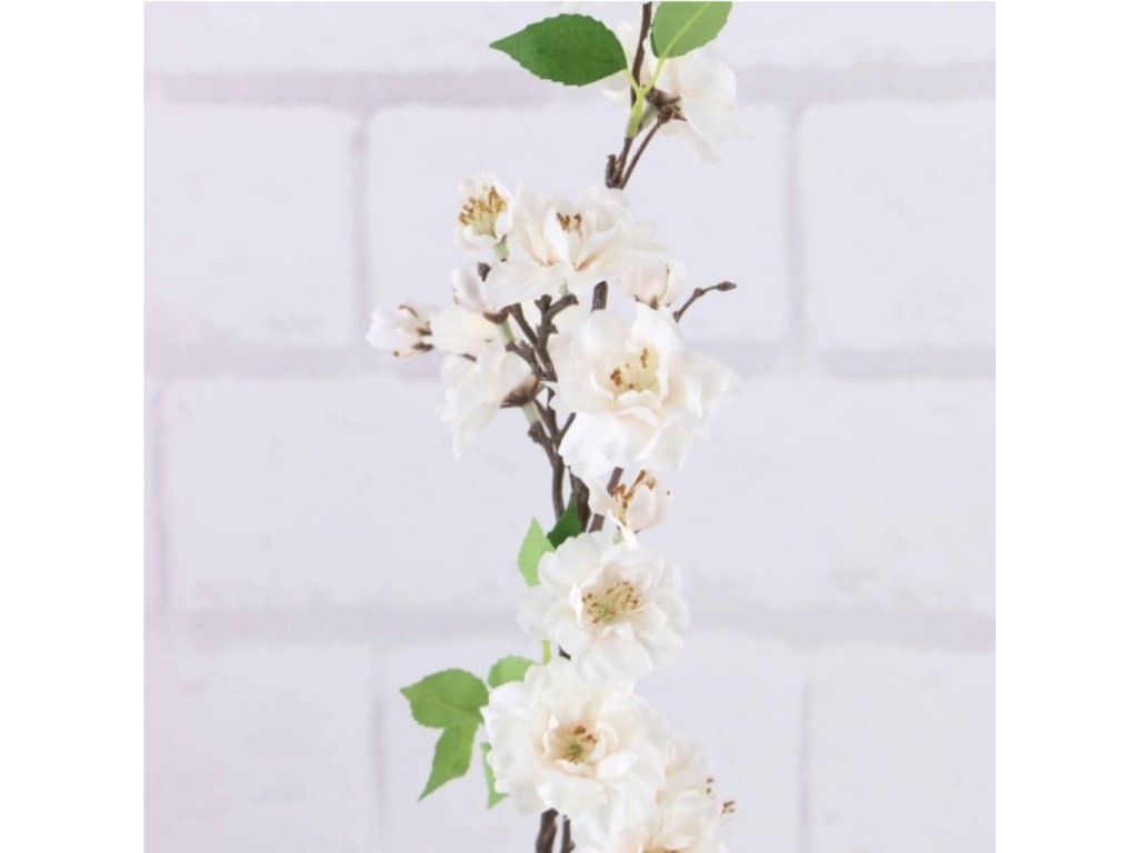Konárik jabloňového kvetu v troch farbách vo vysokej kvalite materiálu. Celková dĺžka 63cm.