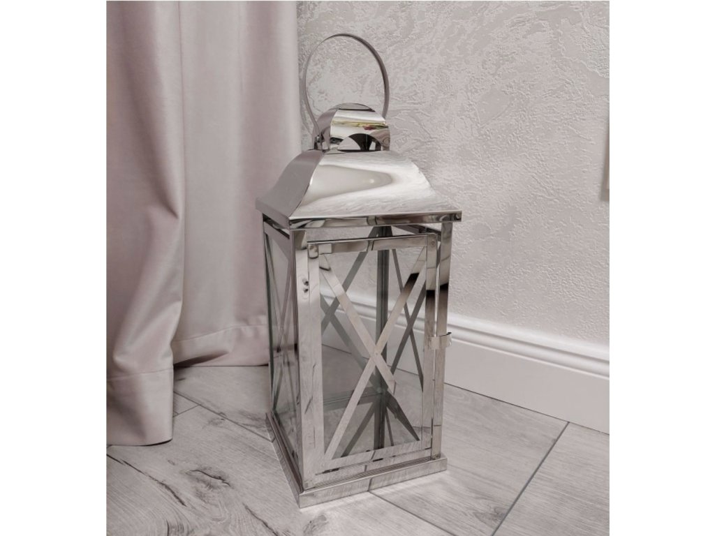 Kovový lampáš v striebornom prevedení dostupný v dvoch veľkostiach. Vhodný ako dekorácia do interiéru alebo do exteriéru.
