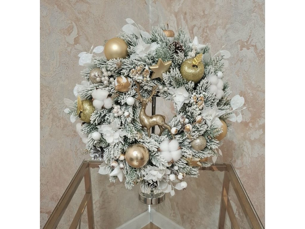 › Vianočné dekorácie › Čečinový veniec na dvere s jelenčekom